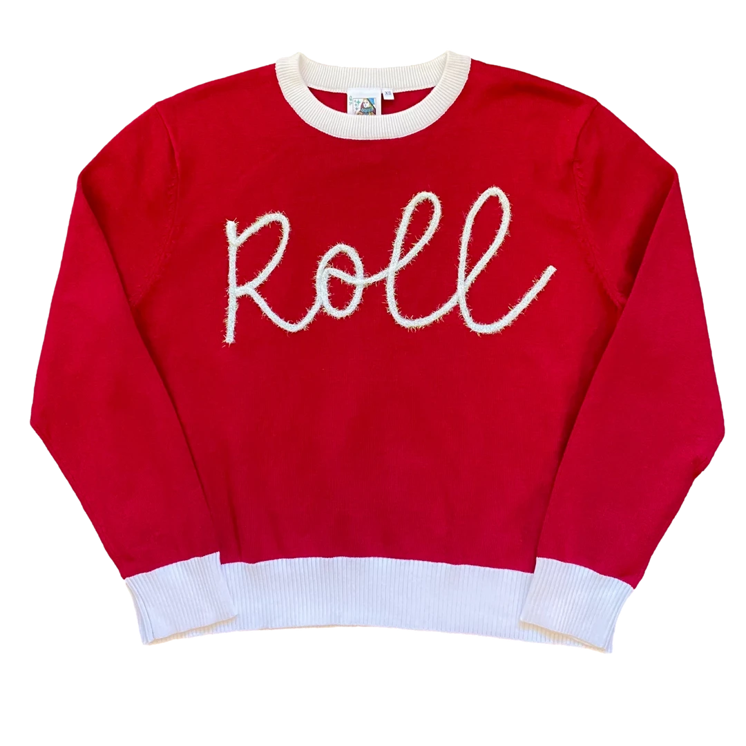 Queen Of Sparkles Glitter Script “Roll” Long Sleeve Sweater