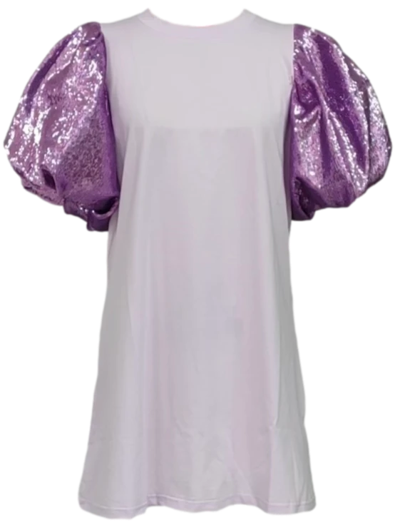 Queen Of Sparkles Lavender Poof Sequin Sleeve Dress