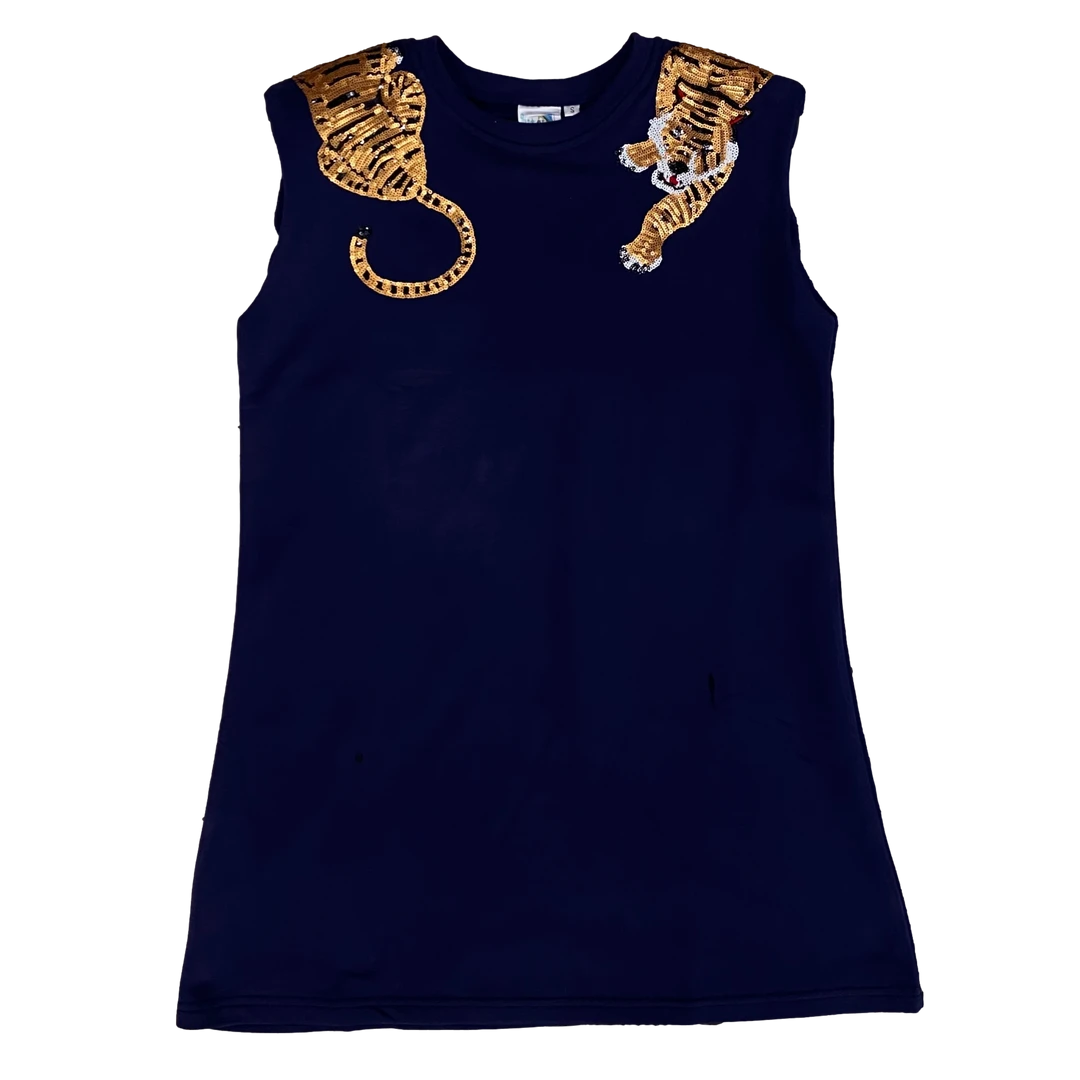 Queen Of Sparkles Navy Shoulder Pad Tiger Dress Gameday