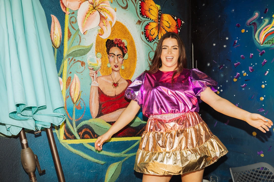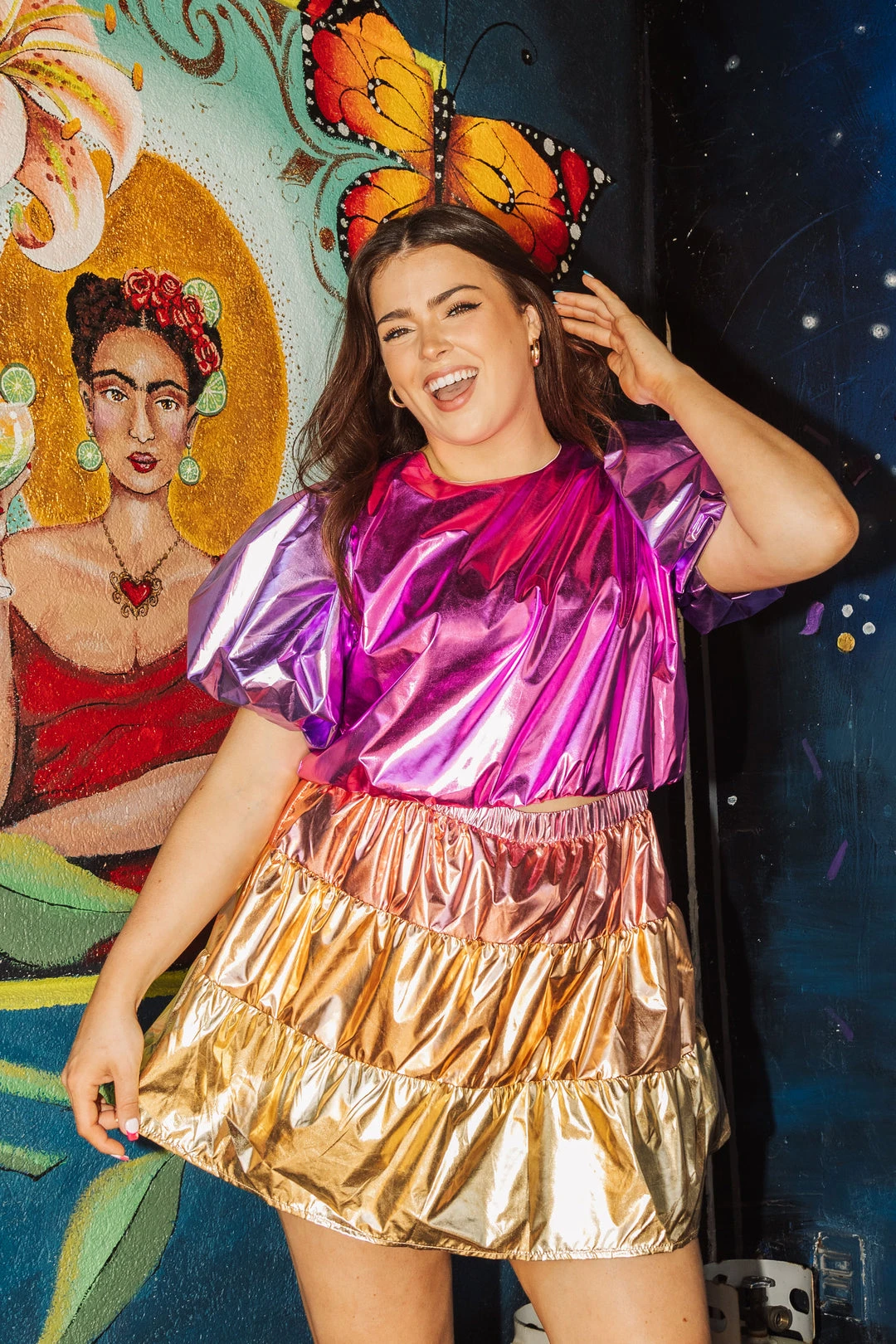 Queen Of Sparkles Pink/Purple Metallic Puff Sleeve Crop Spring 2022