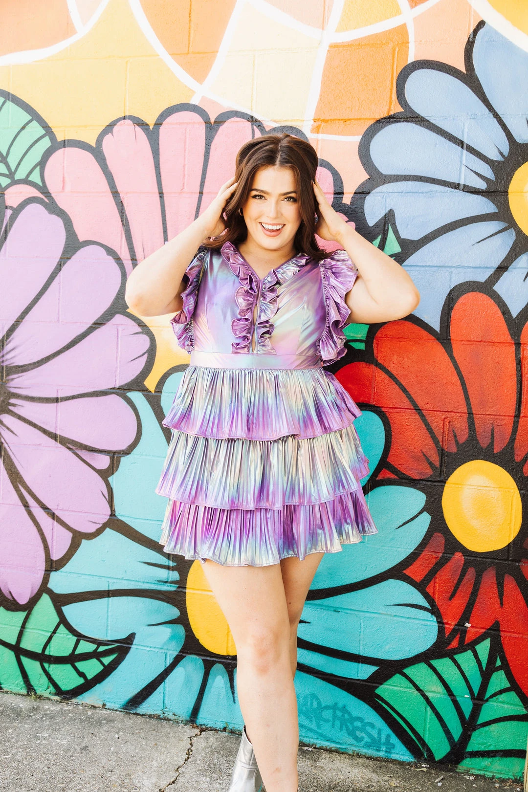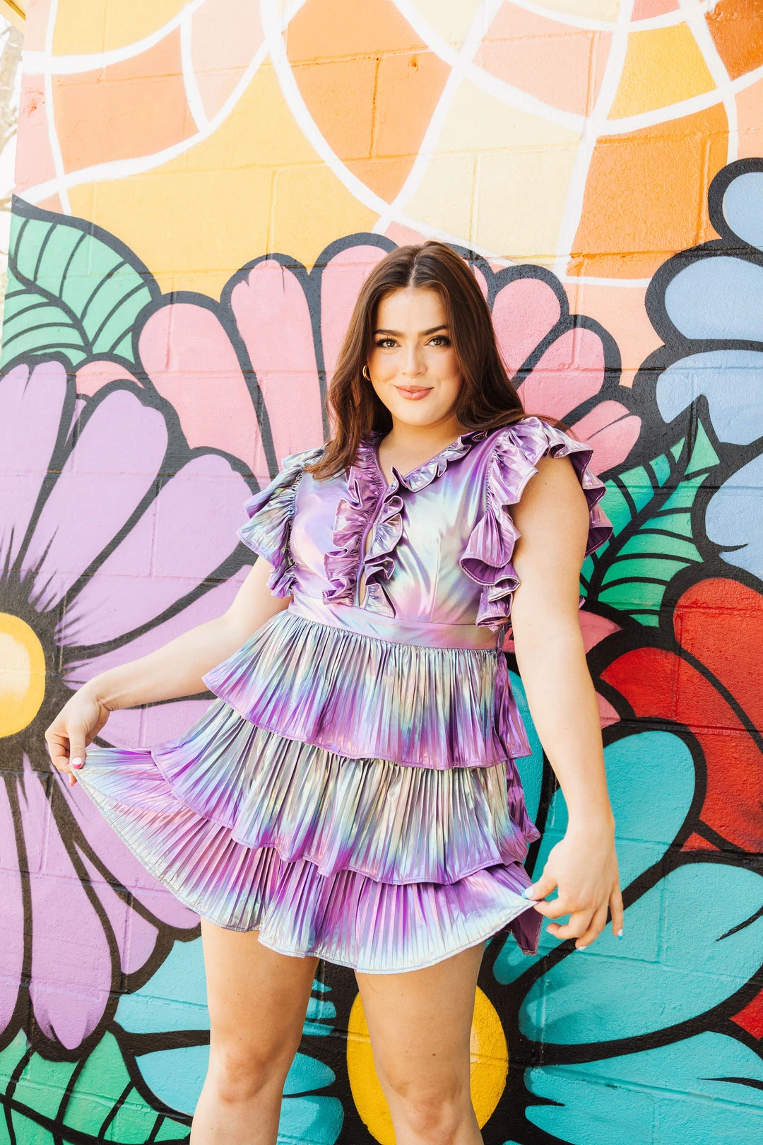 Queen Of Sparkles Purple Metallic Ruffle Dress