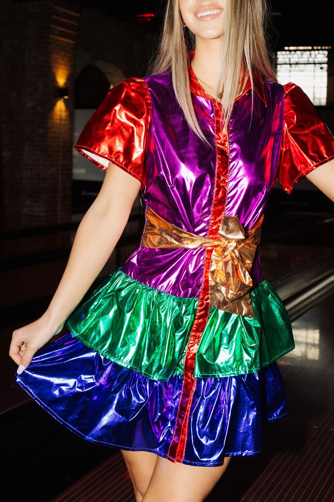 Queen Of Sparkles Rainbow Metallic Collar Dress