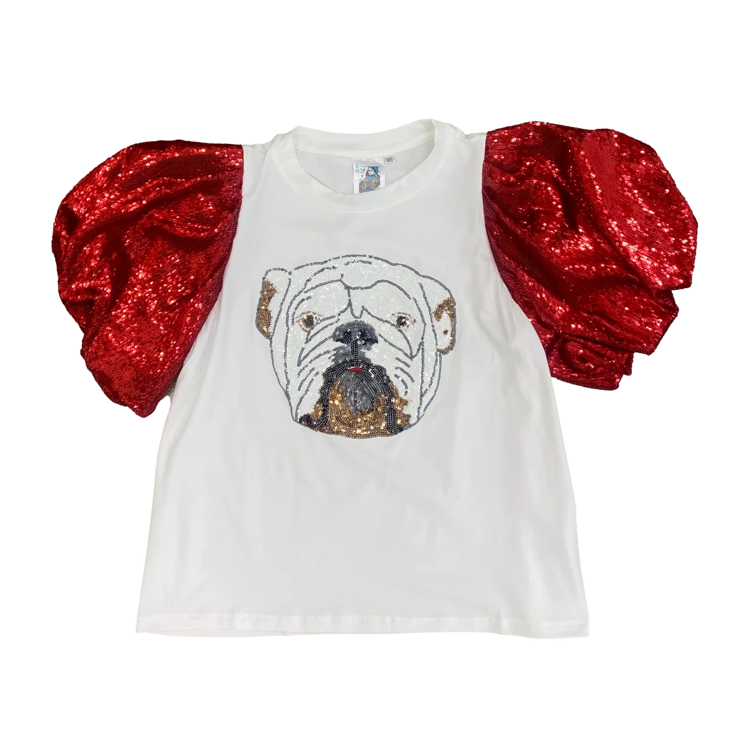 Queen Of Sparkles Red Sequin Poof Sleeve Bulldog Tee Gameday