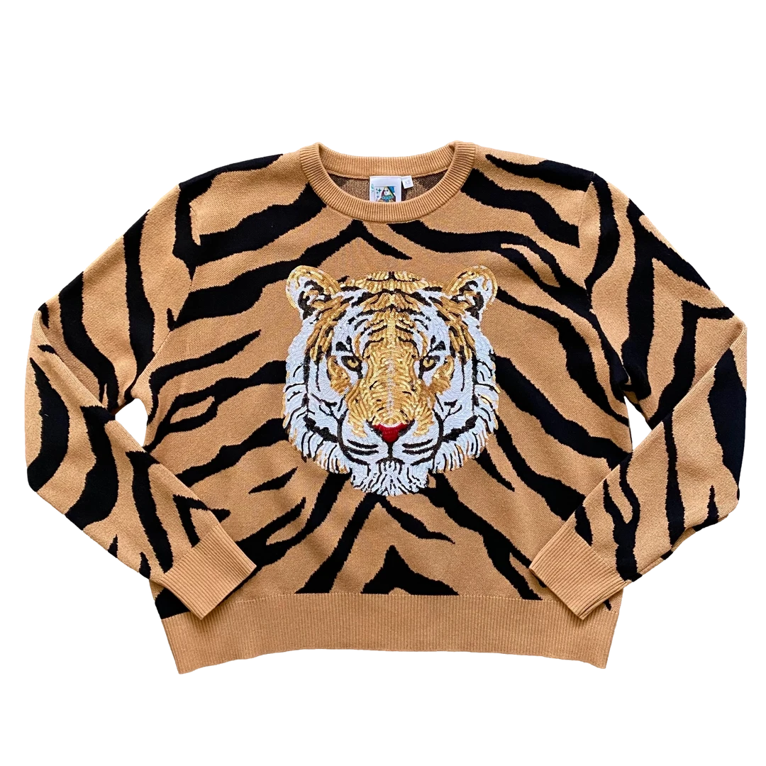 Queen Of Sparkles Tiger Print Tiger Head Sweater Gameday