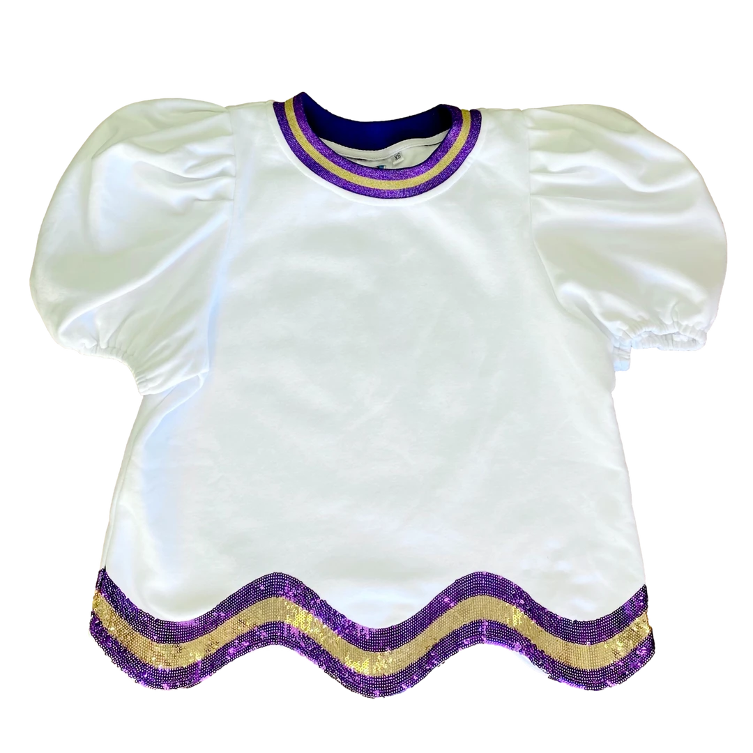 Be the first to review “Queen Of Sparkles White, Purple/Gold Wavy Top” Cancel reply