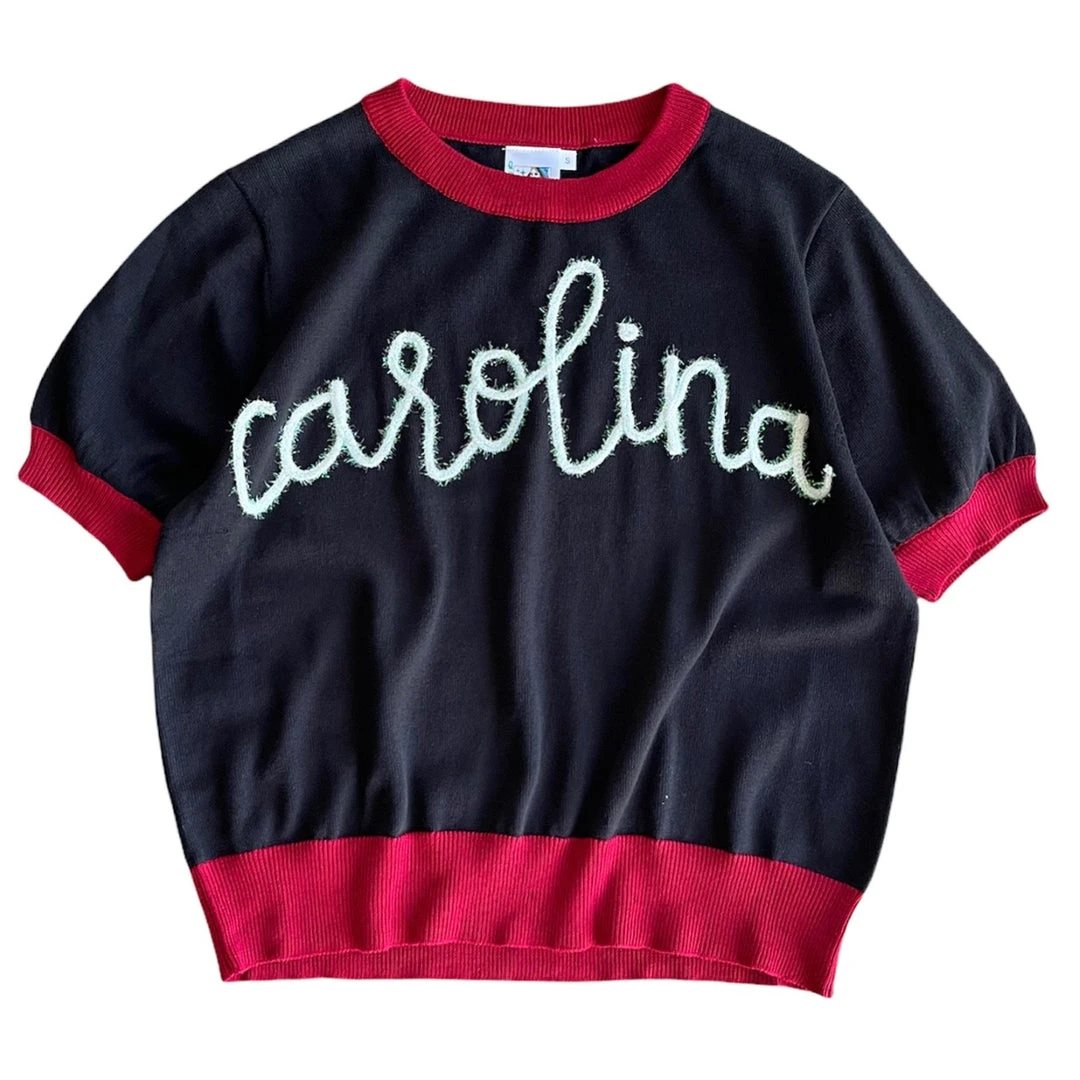 Shop Queen Of Sparkles Black “Carolina” Glitter Script Sweater