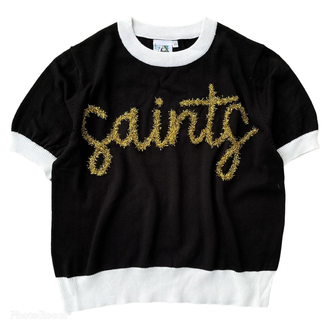 Shop Queen Of Sparkles Black “Saints” Glitter Script Sweater Gameday