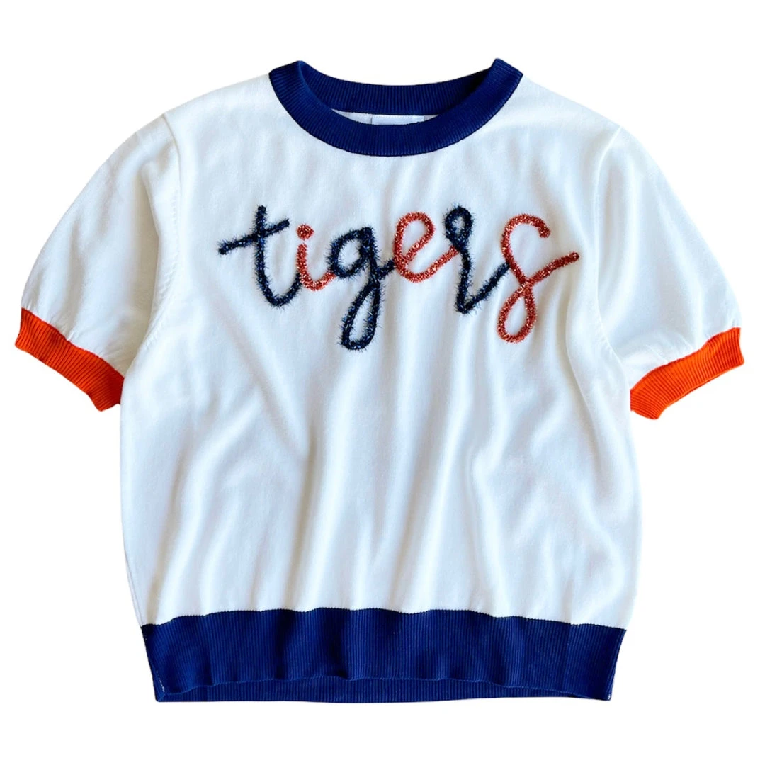 Shop Queen Of Sparkles White With Navy/Orange Tigers Sweater