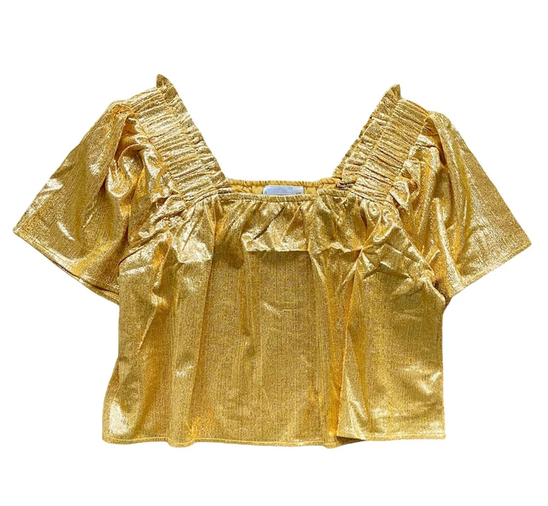Be the first to review “Shop Queen Of Sparkles Yellow Gold Pebble Flutter Top” Cancel reply